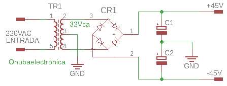 Esquema eléctrico de la Fuente de alimentación ± 45v