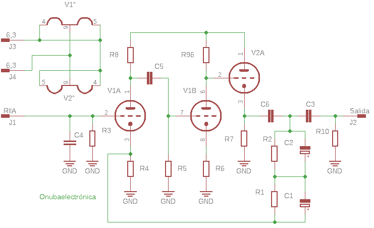 Esquema eléctrico del preamplificador de audios RIIA a válvulas