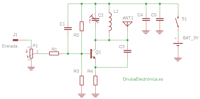 El circuito está constituido por un transistor BF494; es un transistor de frecuencia media del tipo NPN.