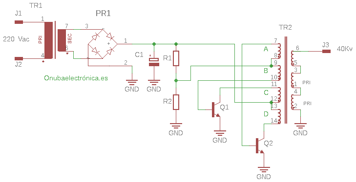 Esquema eléctrico del Conversor de 220V a 40Kv