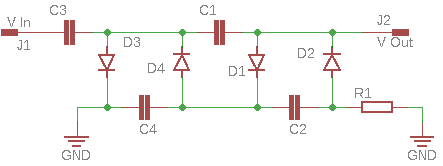 D1, D2, D3, D4 – 1N4007 R1 – 1MΩ C1, C2, C3, C4 – 1µF