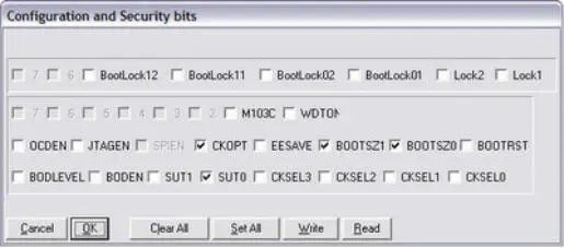 4. Establecer y fijar H-Fuse, configuración: L-fusible para cristal externo de 12 MHz . Para el ATmega8 , H-fusible = 0xC9 y L-fusible = 0xEF , mientras que para el ATmega48, H-fusible = 0xDD y L-fusible = 0XFF.