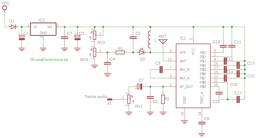 RV2 – 47 KΩ (Potenciómetro)C5 – 4.7 pFD2 –  BB205