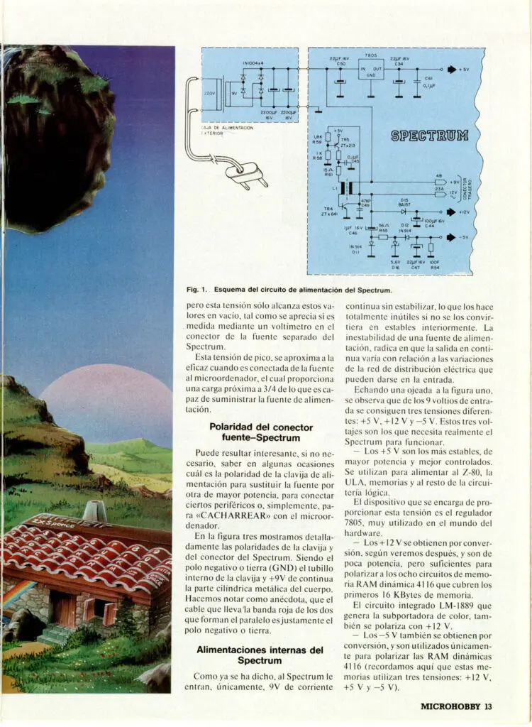 Esquema eléctrico de la alimentación del spectrum 48K (MicroHobby)