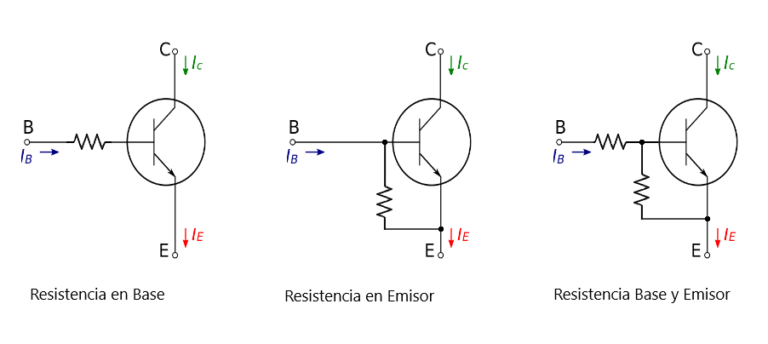 Dependiendo del modelos del transistor nos podemos encontrar varios tipos. los que tienen una resistencia conectada a la base, otros al emisor y tambien los hay con una resistencia conectada a la base y al emisor