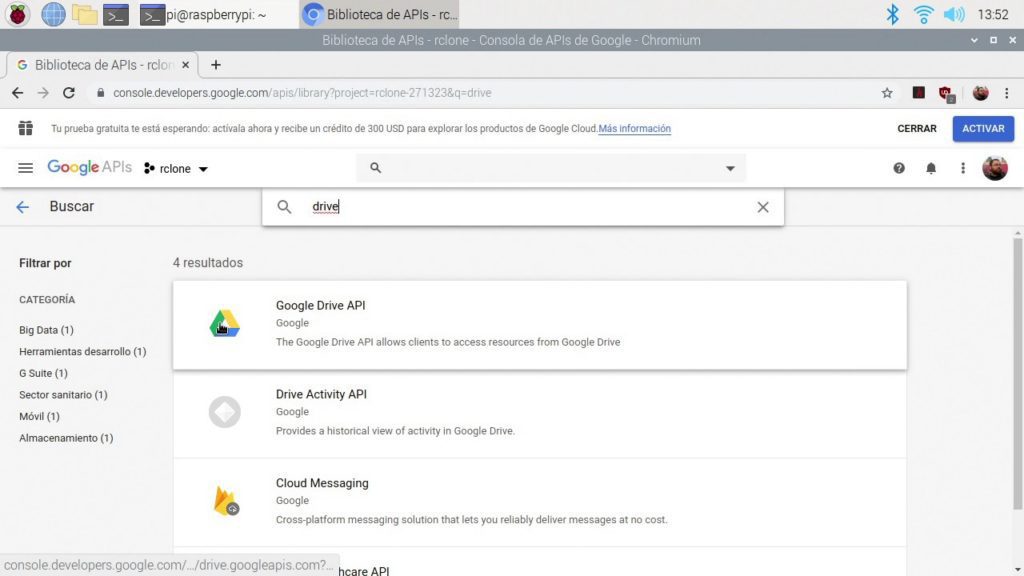 Montando nuestra nube de Google Drive en nuestra Raspberry Pi