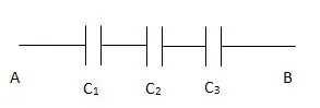 La suma de las caídas de tensión de cada capacitor da como resultado la tensión total aplicada entre los bornes A y B.