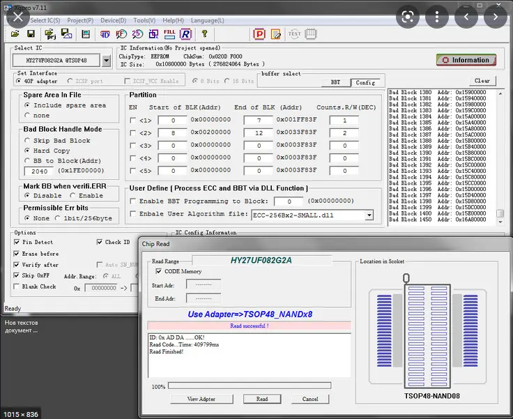 Software utilizado para programar multitud de memorias y controladores utilizando el programador universal TL866II.