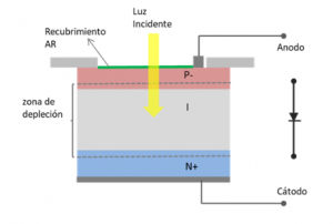 Este diseño, además de mejorar la respuesta del detector, ensancha la zona de depleción, reduciendo la capacidad de juntura Cj, permitiendo así un aumento del ancho de banda a mismos niveles de sensibilidad respecto a un fotodiodo de tipo PN.