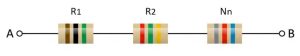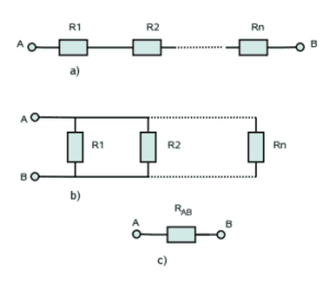 Se denomina resistencia equivalente a la asociación respecto de dos puntos A y B, a aquella que, conectada a la misma diferencia de potencial UAB, demanda la misma intensidad I. Esto significa que, ante las mismas condiciones, la asociación y su resistencia equivalente disipan la misma potencia.